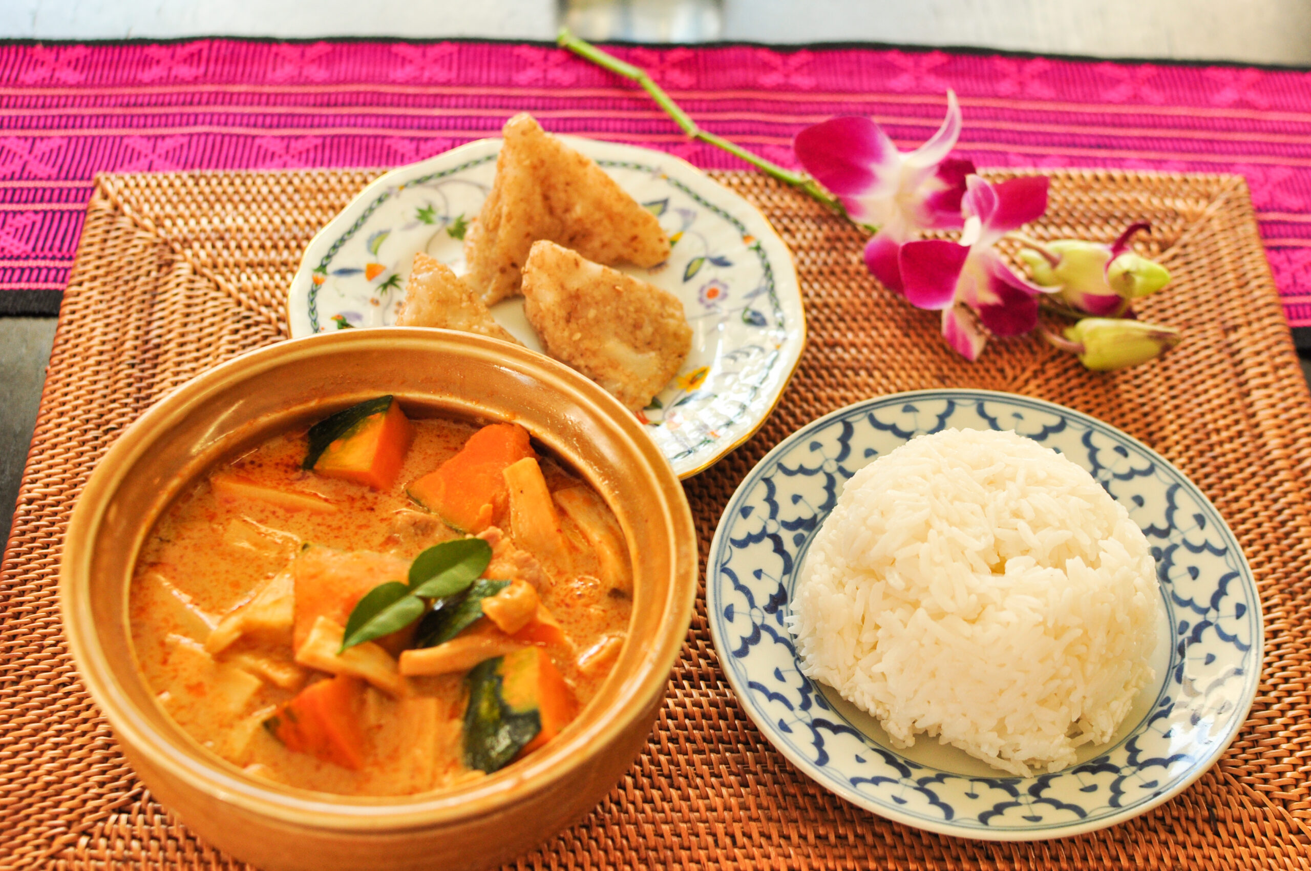 かぼちゃのレッドカレー & ゴマ団子
