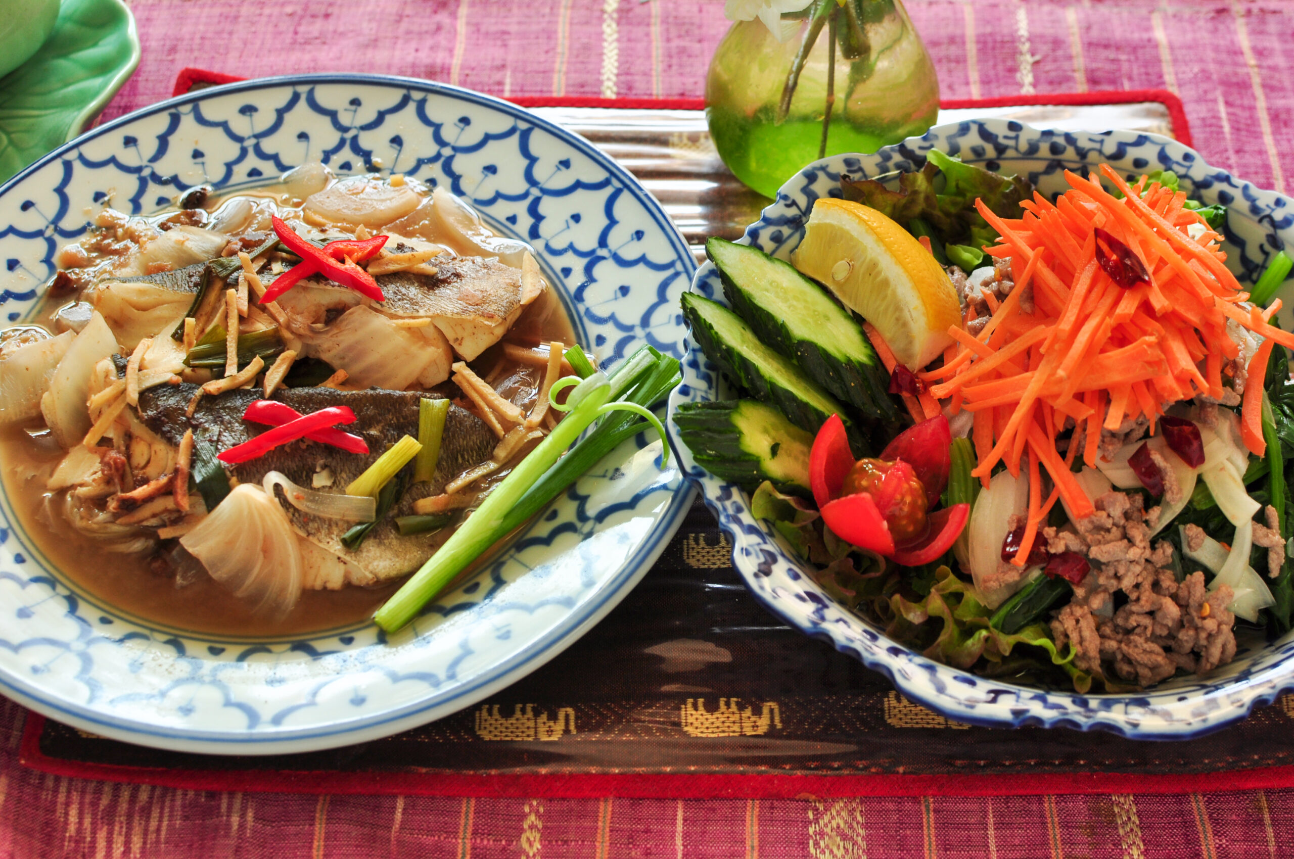 生姜とサケのスープ & 南タイの混ぜ麺